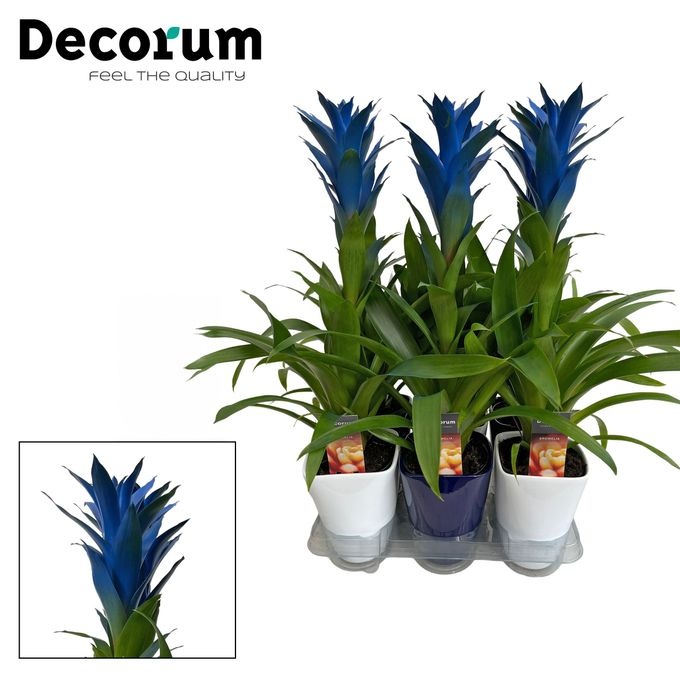 Geselecteerd artikel Guzmania Ocean Blue Luxe Keramiek BLUE & WHITE (Decorum) Artikelcode BLUESTKLMIX